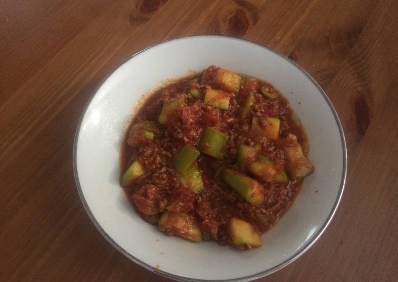 Haché de boeuf aux courgettes en sauce tomate olives