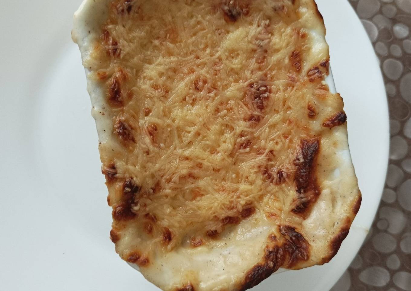 - Recouvrir d'une couche de lasagne, verser de la béchamel et finir avec le gruyère râpé